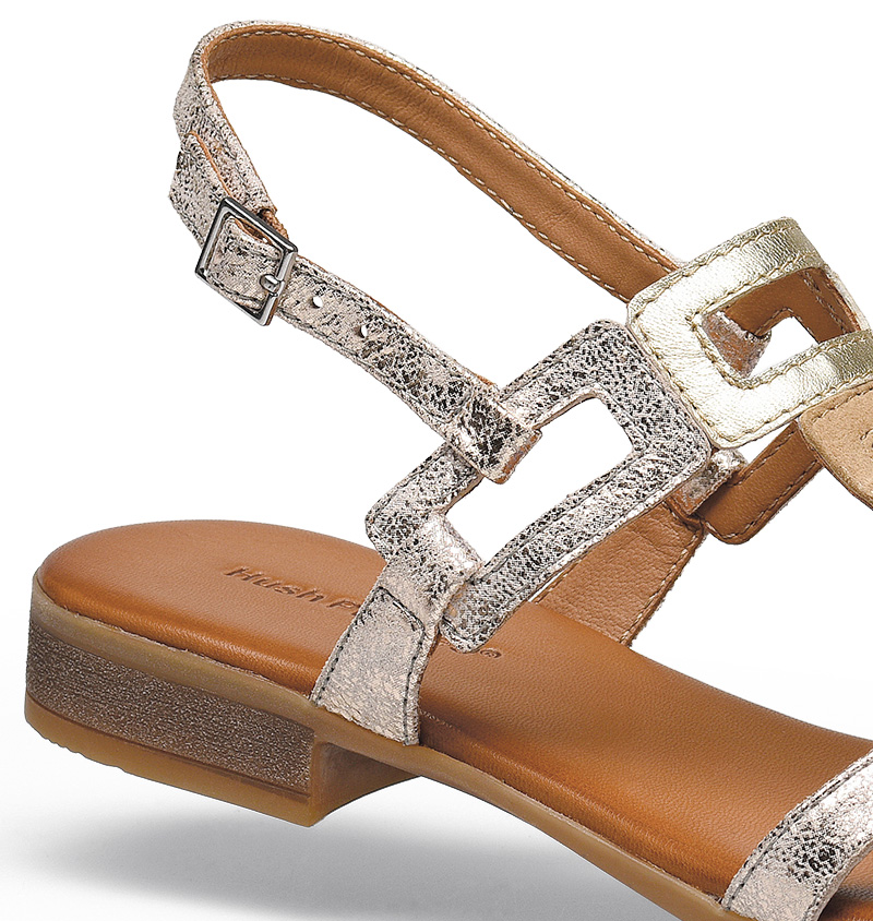 Ihr neuer Lieblingsbegleiter für sonnige Tage! Diese stylischen Riemchensandalen aus glänzendem Metallic-Leder verleihen jedem Sommer-Outfit das gewisse Etwas. Dank des gepolsterten Fußbetts laufen Sie wie auf Wolken. Einfach reinschlüpfen, Schnalle schließen und den Sommer genießen.